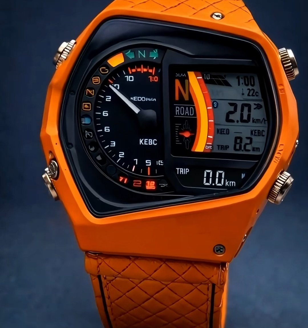 Inspired by the thrill of the racetrack, this dynamic timepiece captures the spirit of speed, precision, and mechanical power. The hybrid display merges classic analog elegance with modern digital functionality, creating a striking balance between tradition and innovation. Built with a rugged structure and distinctive racing aesthetics, it reflects strength and durability in every detail. Designed to track key data while maintaining a bold visual identity, it transforms everyday timekeeping into a statement of performance and passion. A watch that celebrates motion, engineered for those who admire the pulse of the race.